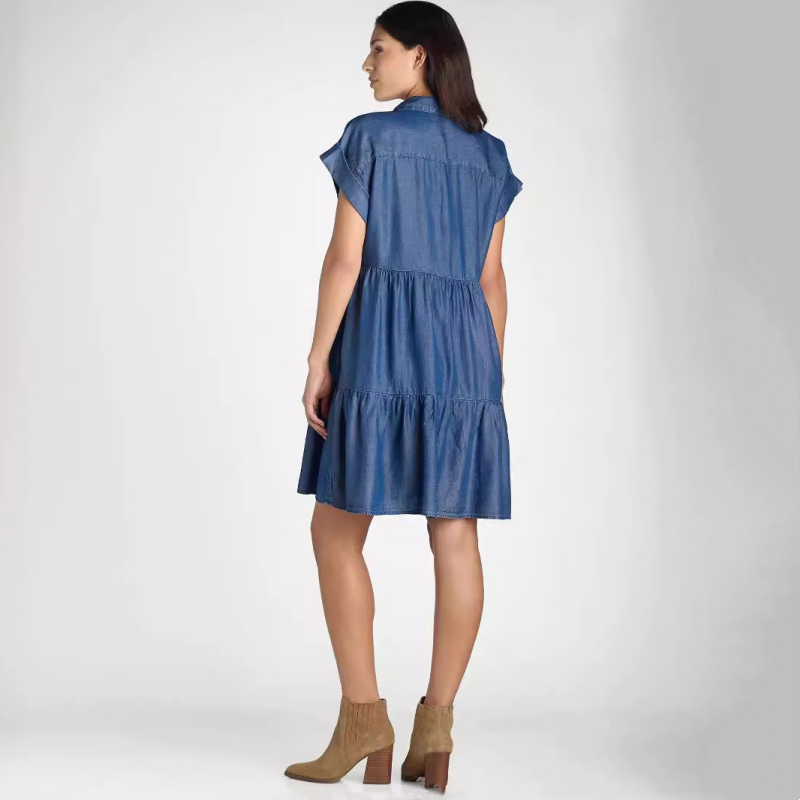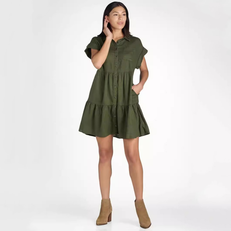 👗Dámské skládané šaty s klopou a krátkým rukávem, zapínání na knoflíky