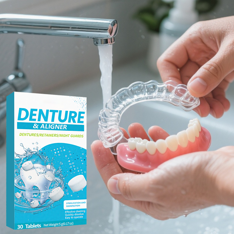 DEEP CLEANING & DISINFECTION - These cleaning tablets deeply disinfect and sanitize retainers, dentures, and aligners, maintaining their clarity and whiteness. They effectively remove bacteria and stains, ensuring your dental devices stay in top condition.