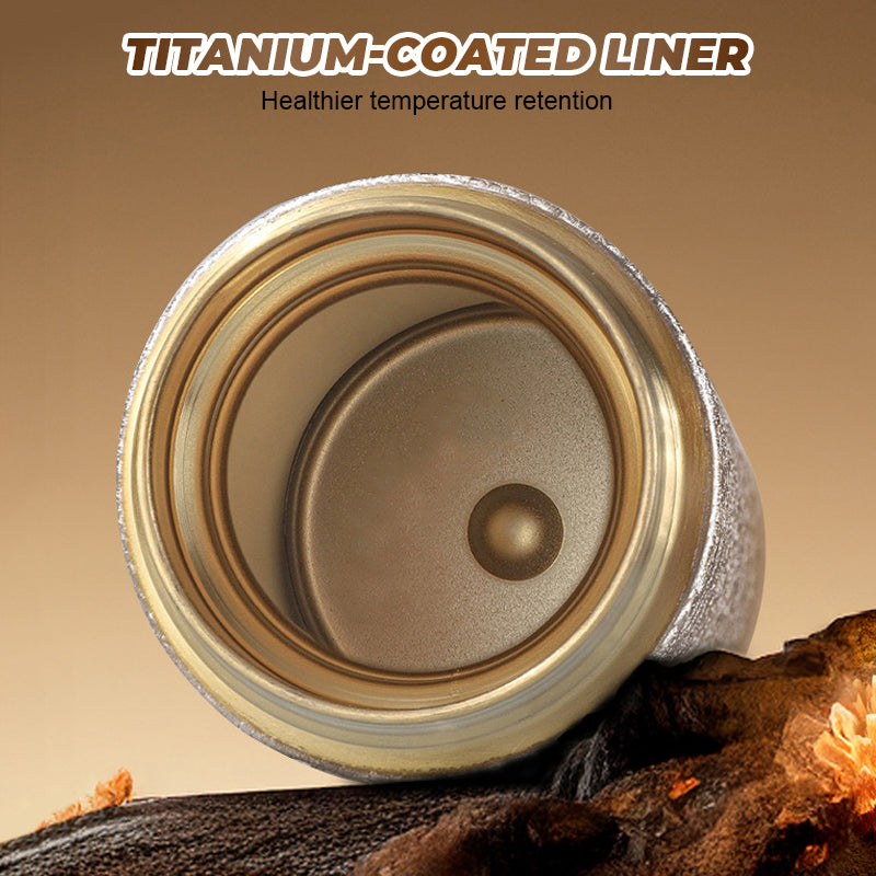 TITANIUM-COATED INNER LINER: Titanium-coated inner liner naturally inhibits bacterial growth, ensuring healthier drinking and better temperature retention for both hot and cold beverages.