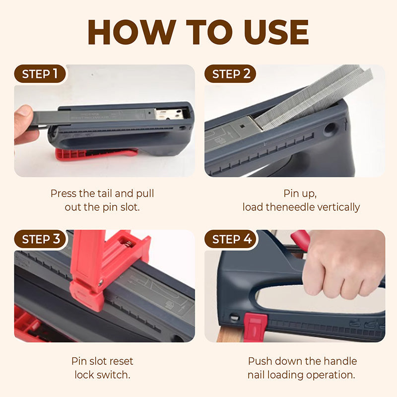 PASO 4: Empuje hacia abajo el mango, operación de carga de clavos.