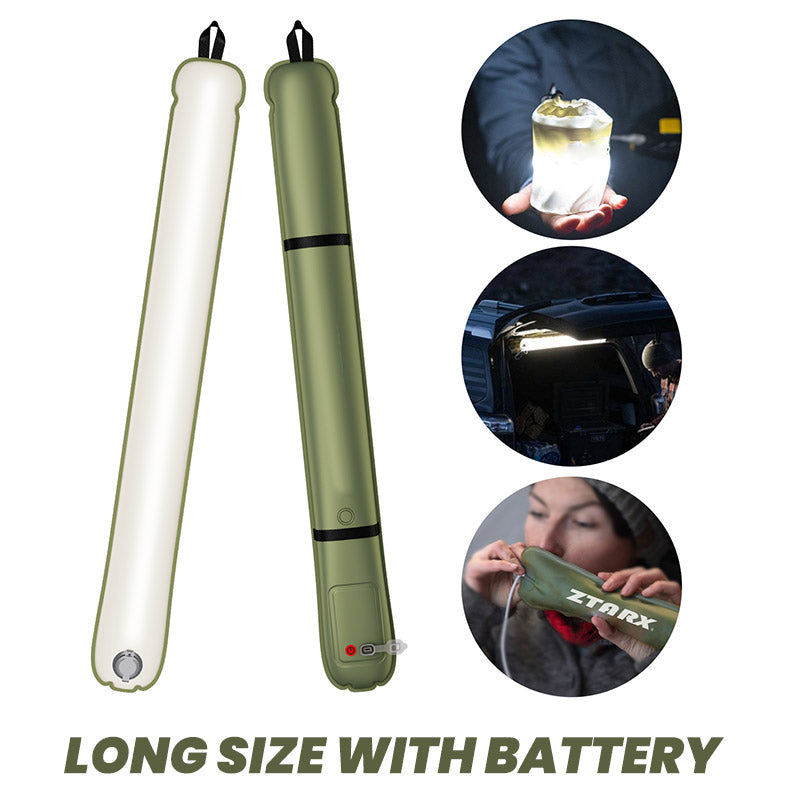 HANGABLE CAMPING LIGHT TUBE WITH MAGNET: This inflatable camping light features magnets at both ends for easy attachment. The carabiner loop and magnetic points allow for versatile hanging on tents, cars, kitchens, and more.