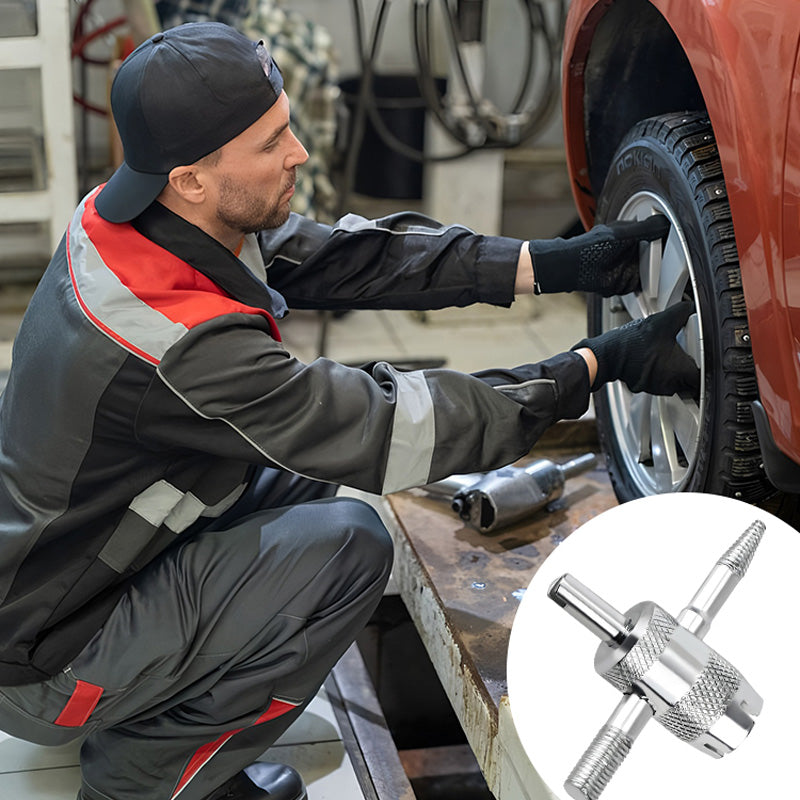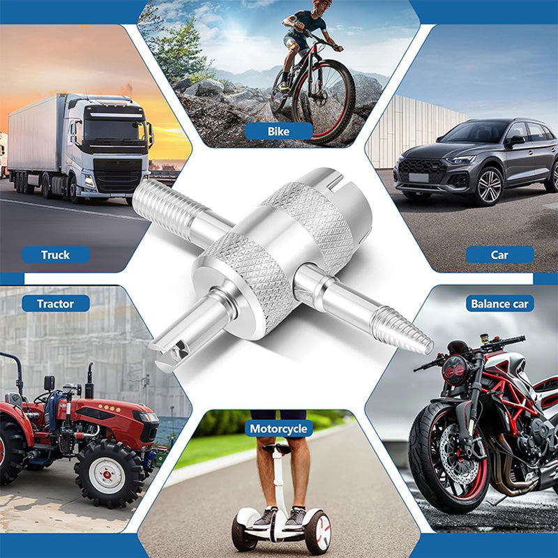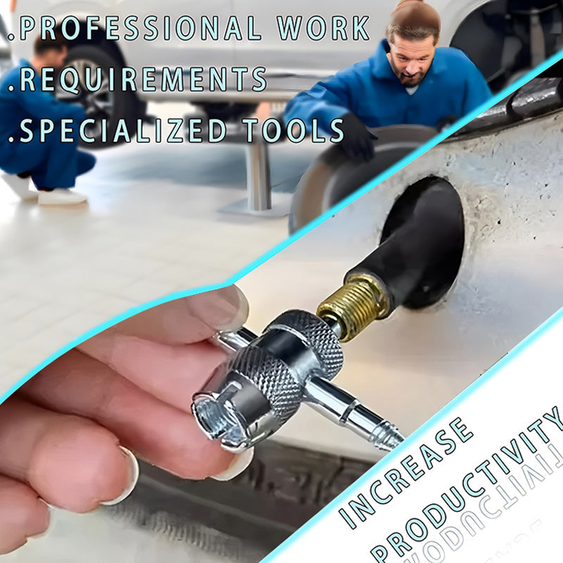 MULTIFUNCTIONAL DESIGN: Designed with a practical and efficient 4-in-1 structure, this tool easily supports valve core removal, rod pulling, tire deflation, and other essential tire-related tasks.