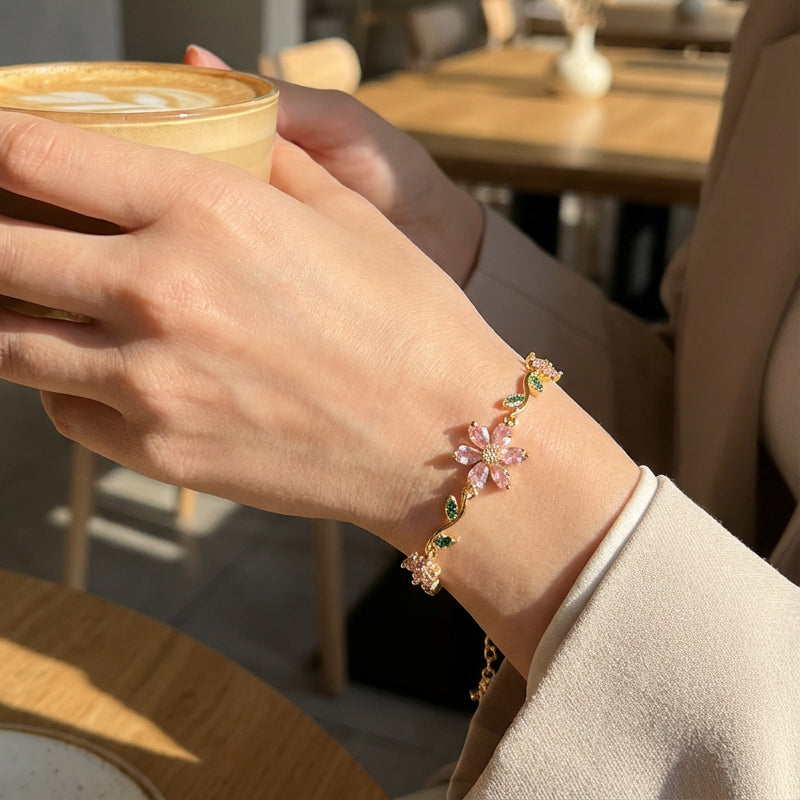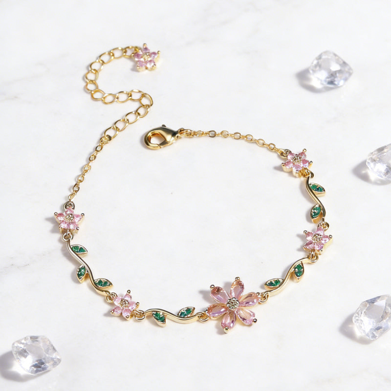 📢📢50 % OFF !! ⏰Women's Cherry Blossom Rhinestone Bracelet