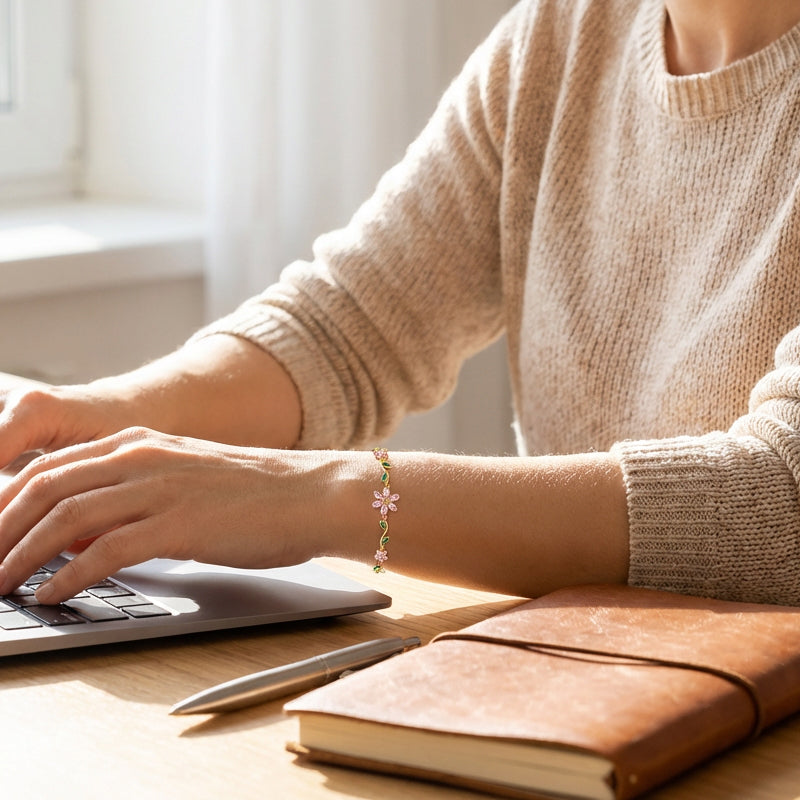 ELEGANT VINE & FLOWER DESIGN: Adorn your wrist with this nature-inspired piece. The delicate vine and cherry blossom motif adds a touch of feminine sophistication, effortlessly elevating your daily look or complementing formal attire.