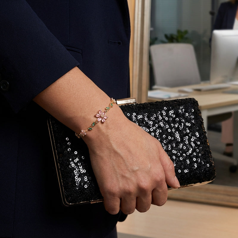 Package Includes: 1 * Women's Cherry Blossom Rhinestone Bracelet