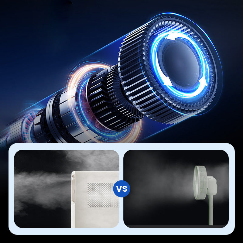 COMPACT AND MULTI-SPACE DESIGN: Fits effortlessly in kitchens, bathrooms, living rooms, and dressing areas, combining powerful cooling and humidification in one sleek, space-saving appliance.