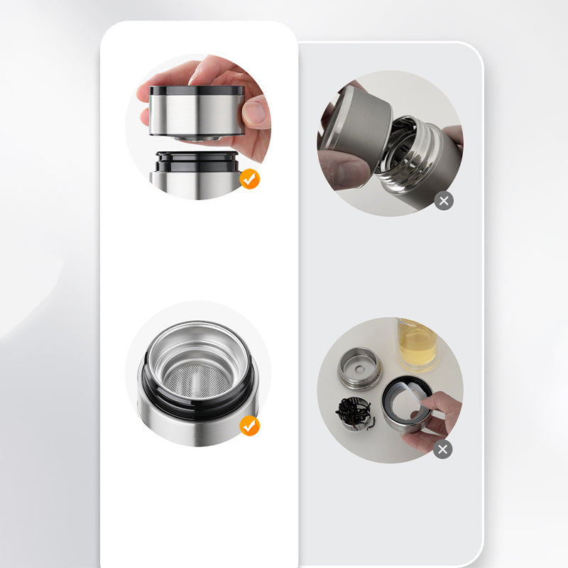 360° LEKKASSIKK DESIGNDenne tekoppen er utstyrt med flere silikonringer for å sikre en vanntett forsegling, selv når den er på skrå. Perfekt for bruk i bilen eller under pendling.