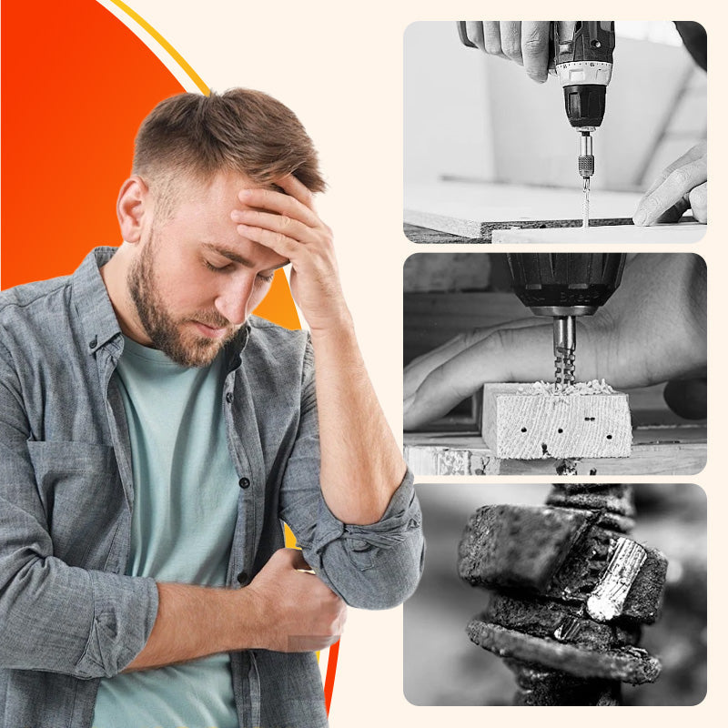 Step 4. Tighten the handle of the drill, press down the hole to the depth of 12-13mm at a constant speed, and then drill 2mm screw holes on the left and right sides.
