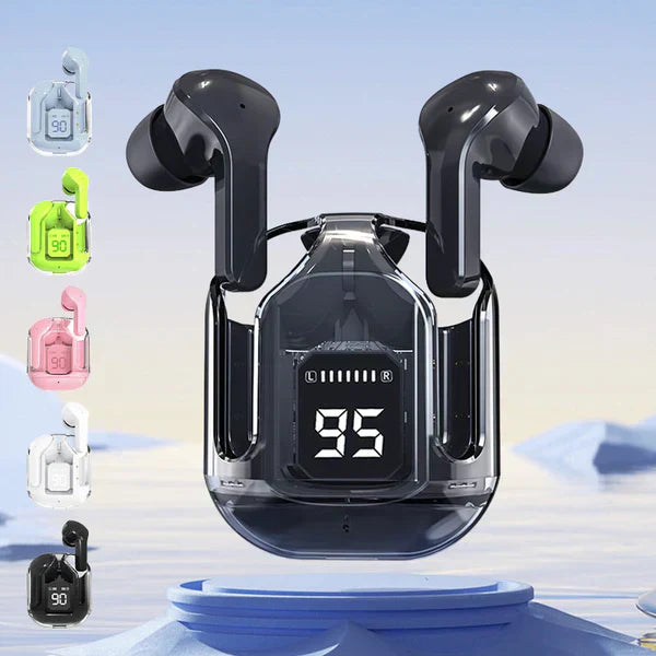 • [Digital LED display and colorful design] Accurate LED display of the power of the charging case and both earbuds, so you can know the power status of the wireless earbuds and charging case at any time. This series of Bluetooth earphones with transparent charging case, futuristic structure, 5 different colors. The waterproof earbuds can effectively prevent splash damage caused by sweat and raindrops.