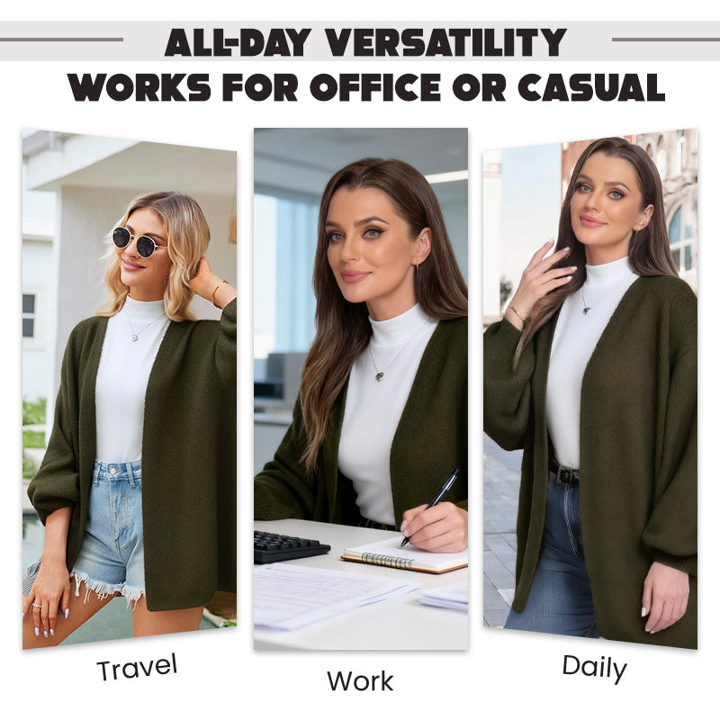VERSATILE V-NECK OPEN CARDIGAN: The V-neckline visually extends the neck and upper body, adding a touch of sophistication. As an open-front style, it’s easy to layer over blouses, shirts, or dresses, offering adaptable styling for work, weekends, or casual outings.