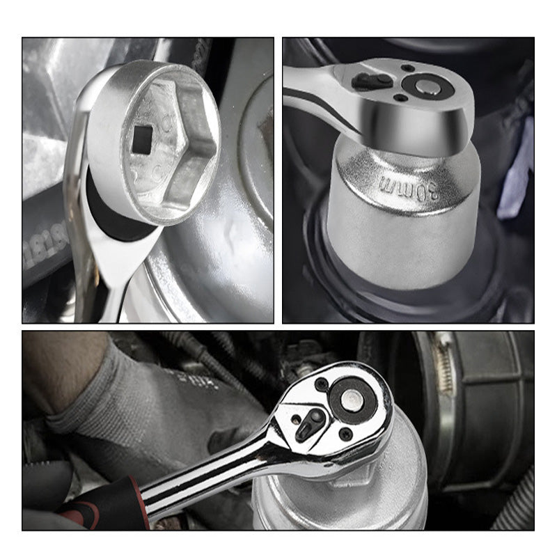 QUICK AND EFFICIENT OPERATION: Designed for fast oil changes, this kit's 3/8" square drive and quick-release button allow instant socket changes. The anti-slip ball spring keeps tools securely attached, saving time and frustration during maintenance.