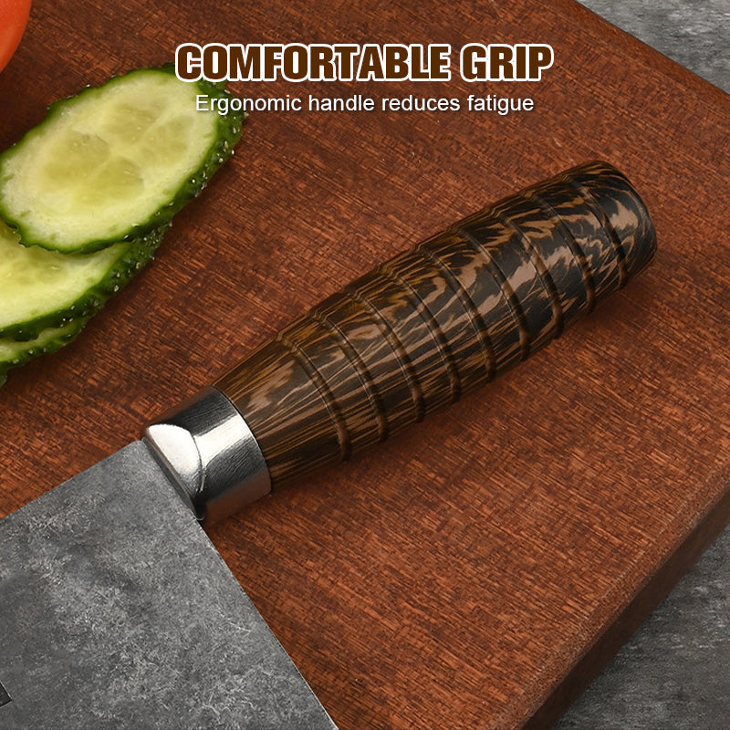 ERGONOMIC COMFORT – Equipped with a well-balanced handle, the knife is shaped to fit naturally in the hand, reducing strain during extended use. This thoughtful design minimizes fatigue and maximizes control, making it easier to maintain accuracy and comfort during both quick tasks and extended meal preparation sessions.
