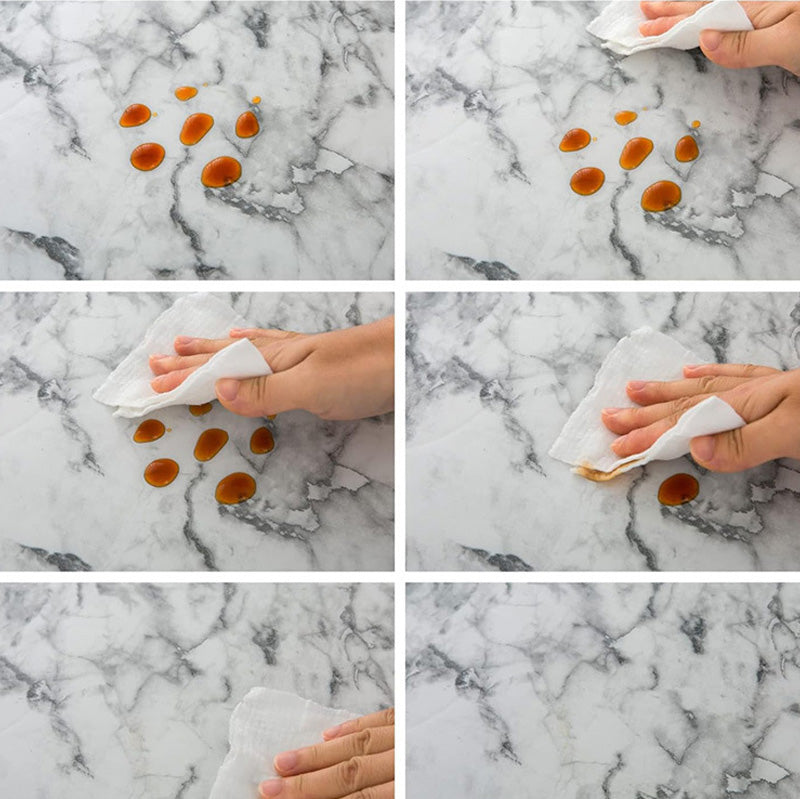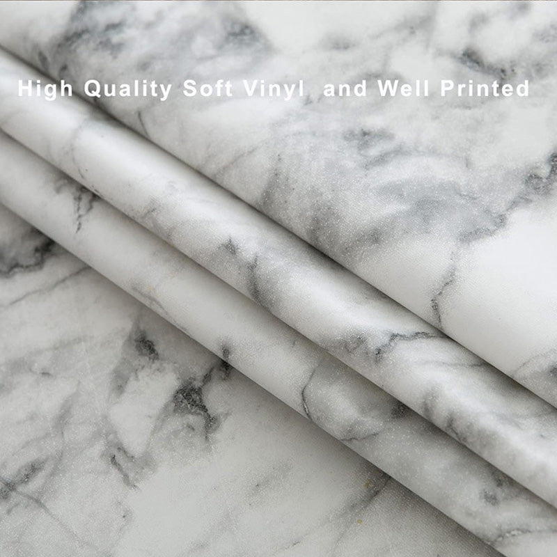 PROTECTIVE WHITE FLANNEL BACKING: The table cover has a white flannel backing that protects your nice table from scratches, spills, and stains. This protective layer acts as a barrier, keeping your table in pristine condition while still allowing you to enjoy the stylish design of the marble - patterned cover.