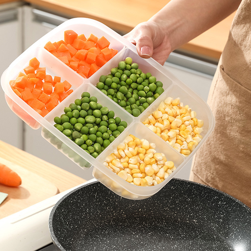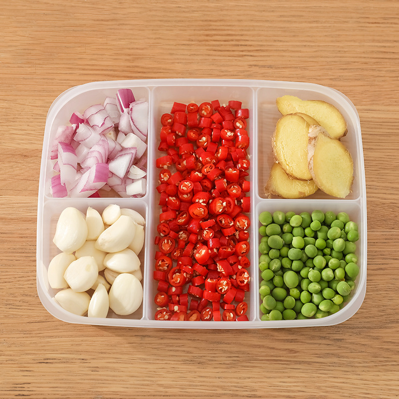 MULTI-SECTION LAYOUT – This container features multiple compartments that keep food separated for easy organization. It’s ideal both for prepping ingredients by recipe—keeping each part ready—and for storing different foods separately to prevent flavors from mixing. Whether preparing meals ahead or simply organizing food, this design keeps your kitchen orderly and simplifies food management.