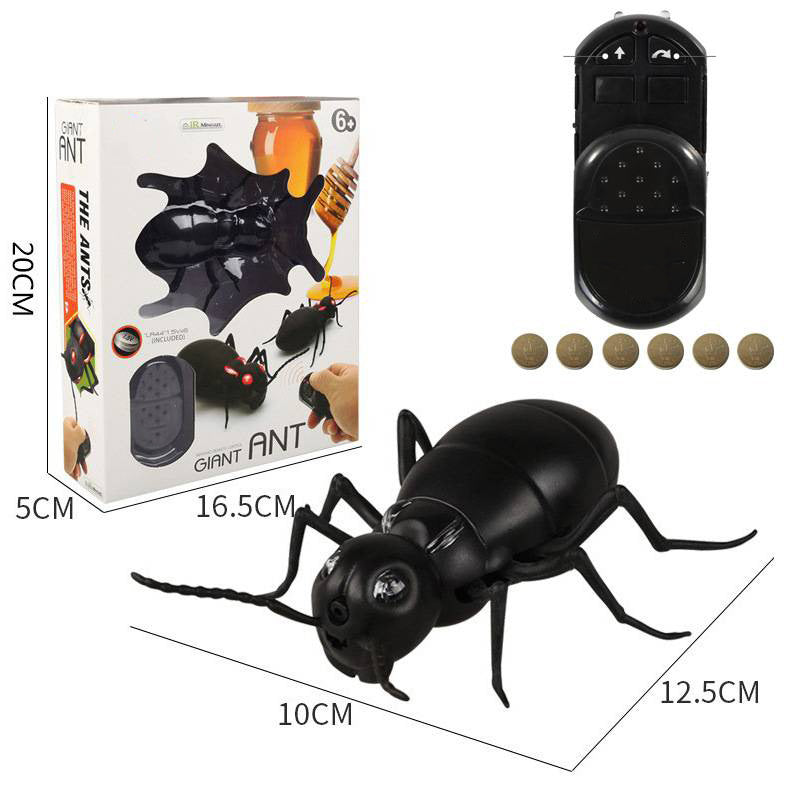 Storlek: 16*9 cm (spindel), 14*9 cm (kackerlacka), 10*12 cm (myror), 5,5*3,5 cm (fjÀrrkontroll)